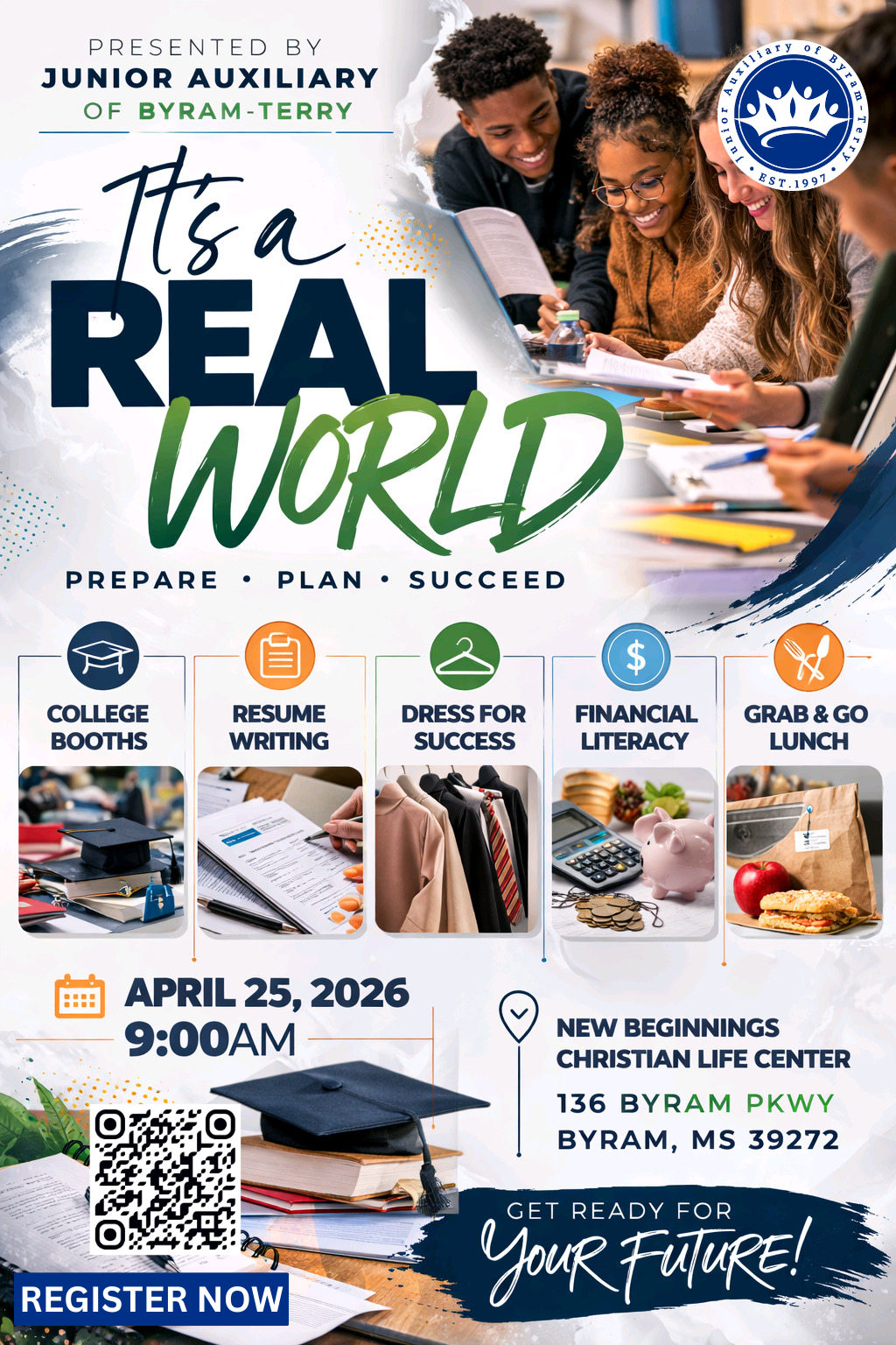 The Junior Auxiliary of Byram-Terry invites the community to join us for our college and career readiness expo “It’s a REAL World”! This is an exciting, hands-on event designed to help you prepare for life after high school!